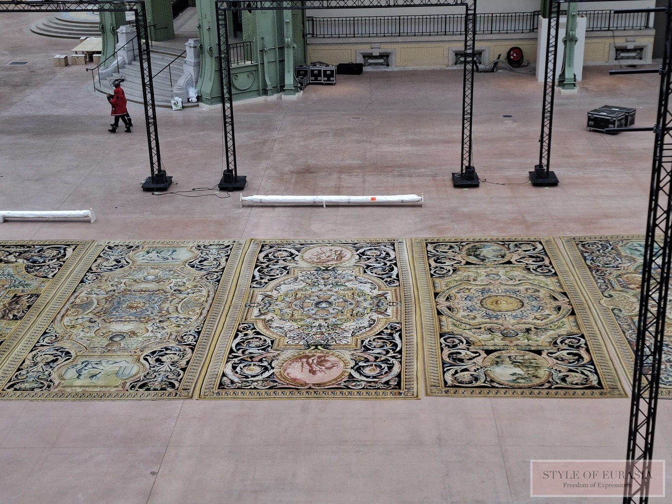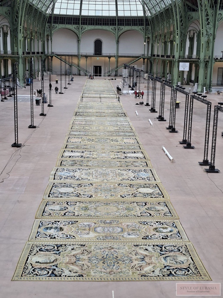 «Большой ковер в персидском стиле», монументальное произведение из 92 ковров, соединенных в ширину, должен был украсить второй этаж Большой галереи Лувра. Эта галерея длиной 440 метров служила торжественным путем для гостей короля: она вела из Больших покоев в тронный зал, располагавшийся в павильоне Ривьер (ныне павильон Флора).