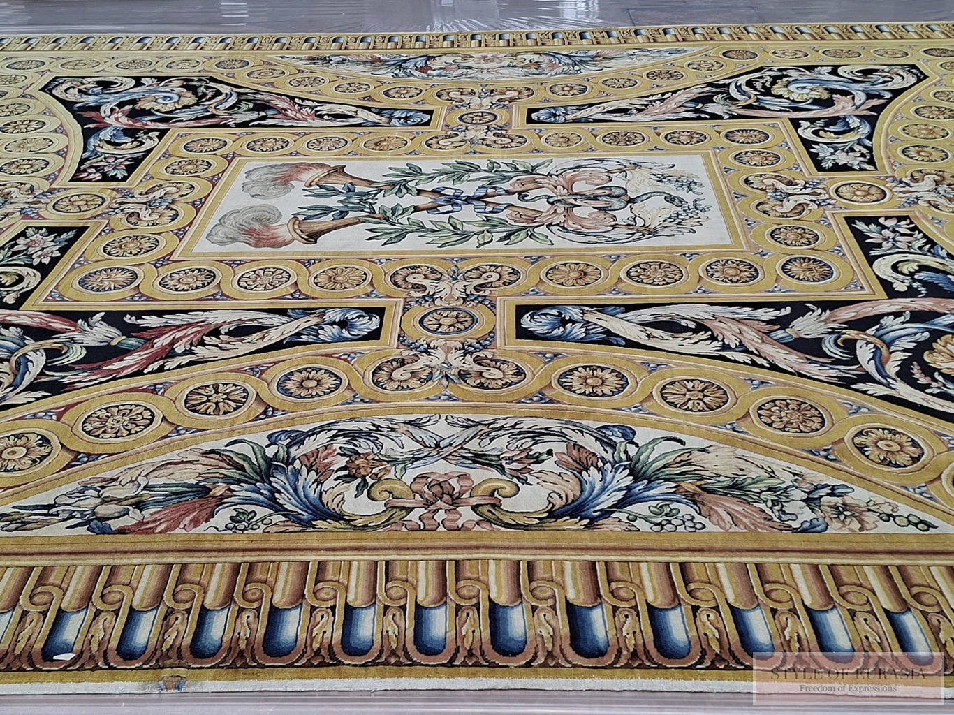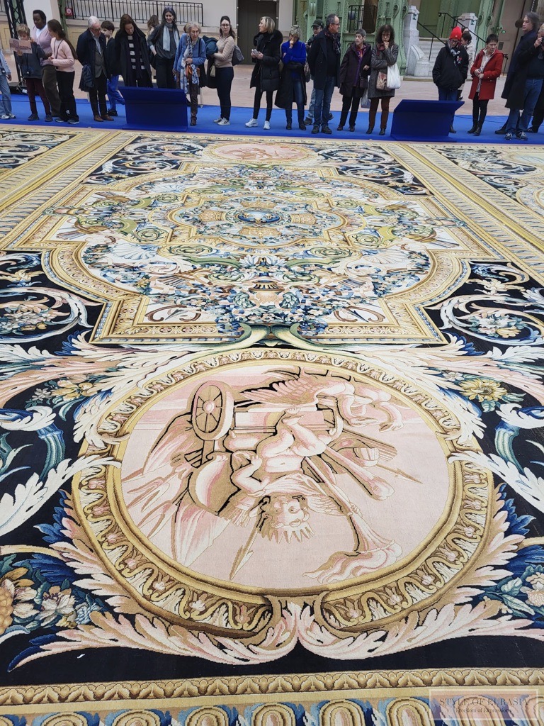 The fate of this incredible collection followed the turbulent shifts of history, through Napoleonic revivals, diplomatic gifts, cutting, and sales. Some carpets eventually graced embassies and high offices of power—such as the President of the Republic’s desk—or witnessed historic moments like the signing of the Treaty of Versailles in 1919. Today, only 41 of these carpets are known to exist; about thirty of them have been reunited here.