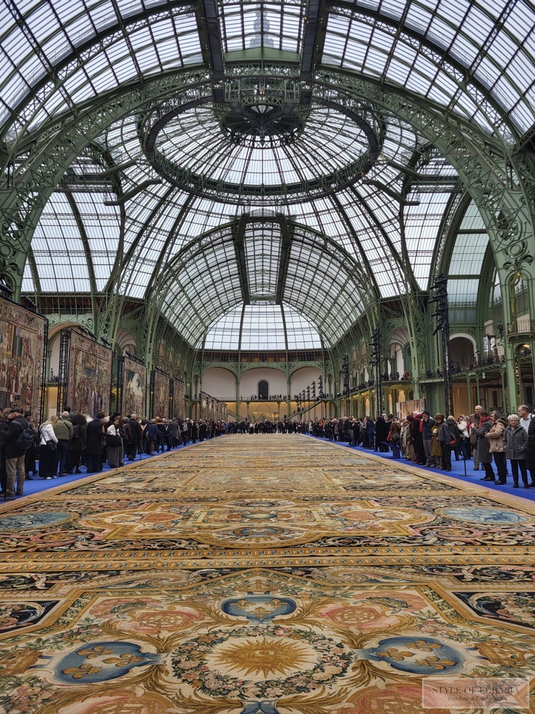 The "great Persian-style carpet," a monumental work consisting of 92 individual rugs joined edge-to-edge, was originally intended to adorn the first floor of the Grande Galerie. Stretching 440 meters in length, it was designed to lead the King’s guests from the Grand Apartments to the throne room in the Pavilion de la Rivière, now known as the Pavilion de Flore.