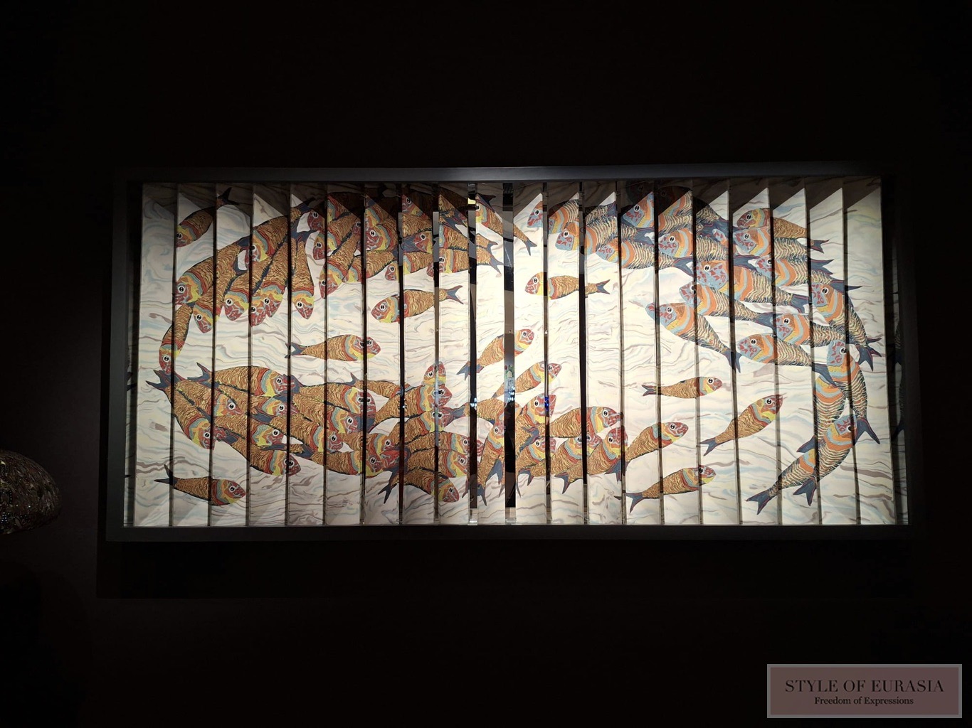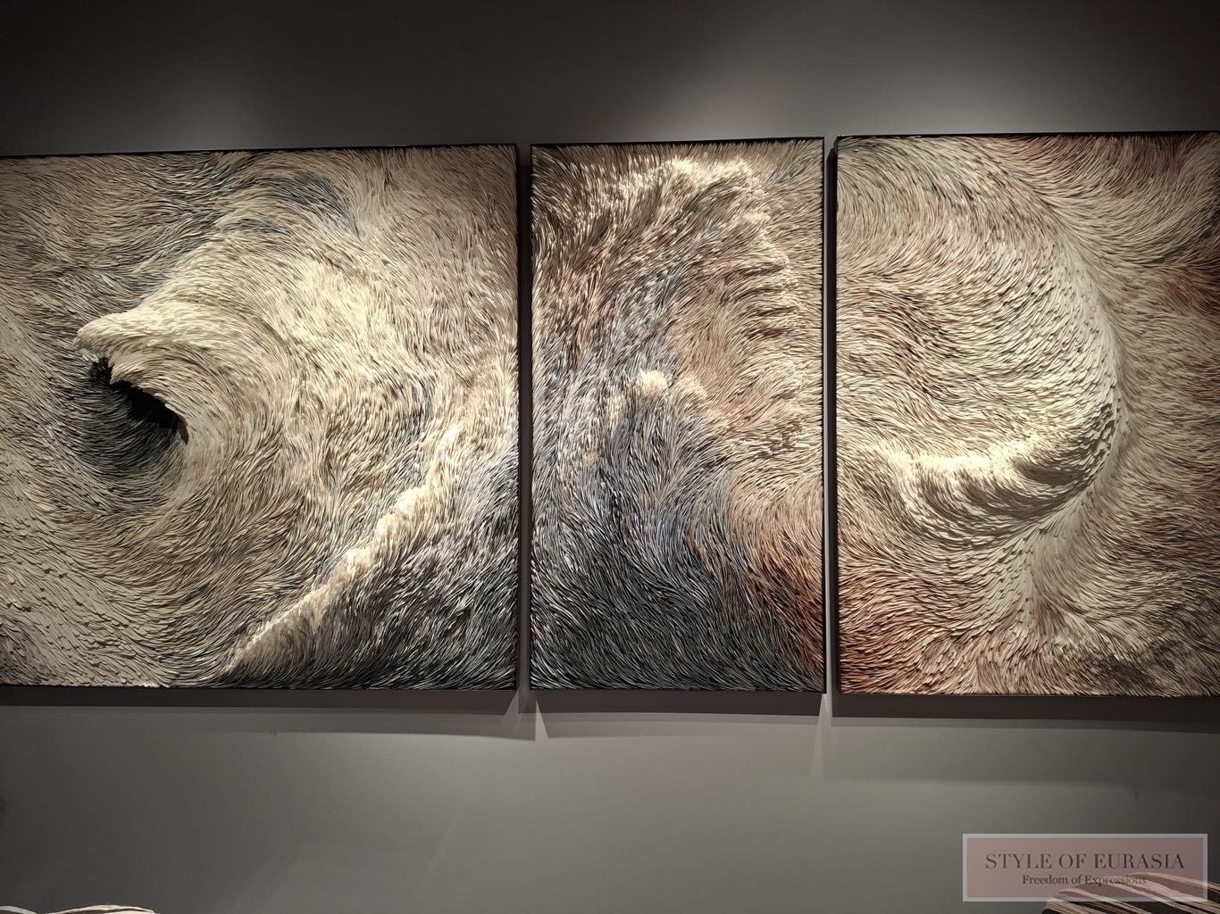 Текстиль, однако, утратил часть своей выразительности по сравнению с предыдущим выпуском PAD Tuileries. Безусловно, присутствует Симон Фёльфен (Maison Parisienne, Париж), но в остальном экспозиция скромнее — за исключением работы Sisal Crystal датской художницы Сесилии Бендиксен (Galerie Maria Wettergren, Париж).