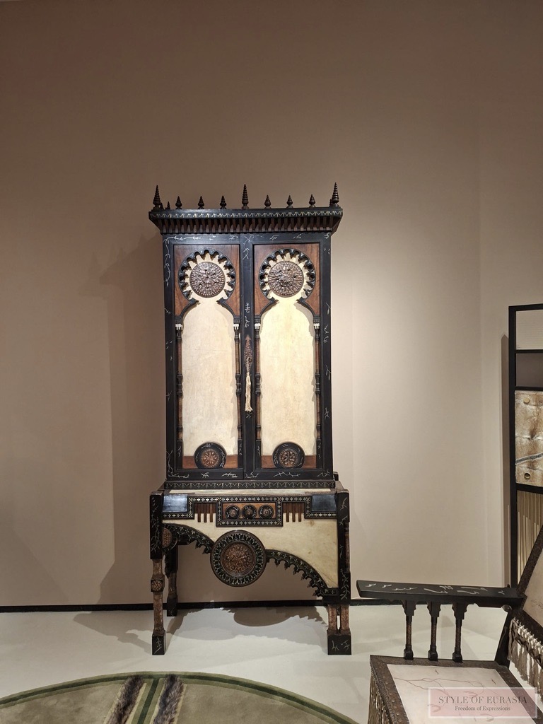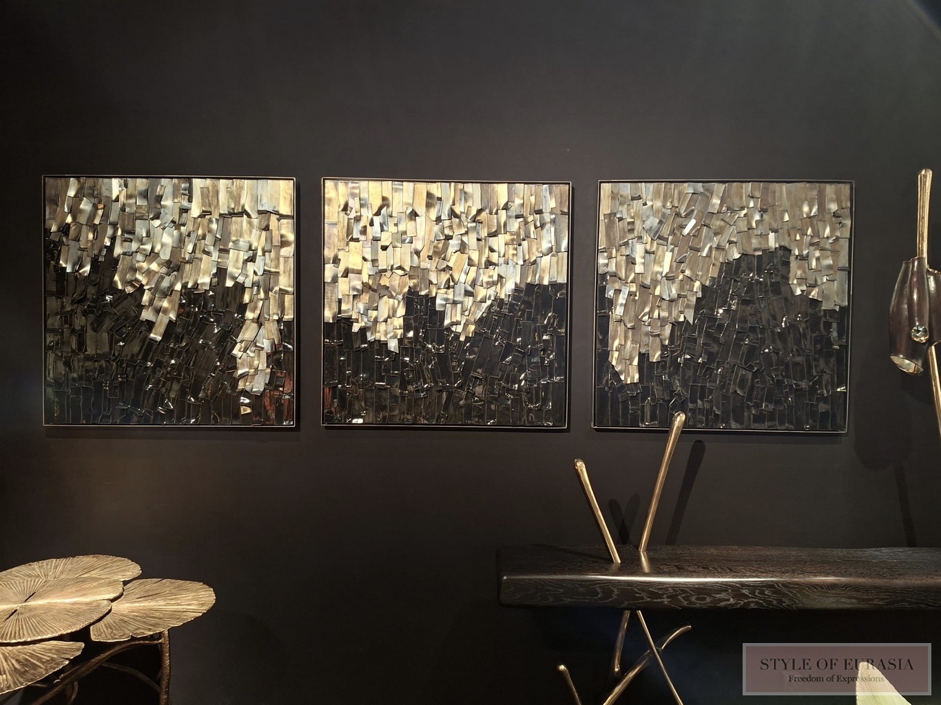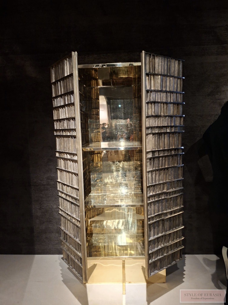 Современный дизайн продолжает расширять своё влияние, всё чаще вытесняя исторические эпохи. Металлическая поэзия Жуа де Роан-Шабо заполняет стенд Galerie Chastel Maréchal (Париж). Шкаф с серебристой патиной Аластера Кука перекликается с зеркалами Одьян Делос (Galerie Mougin, Париж). Яркий шкаф Achille Salvagni Atelier (Рим) впечатляет как снаружи, так и внутри. Стул из прозрачной смолы, напоминающий лёд, идеально вписался бы в ледяной отель (Palaty, Санкт-Петербург), а для «тепла» отлично подойдёт консоль Leopard Жан-Батиста Фастреза (Kréo, Париж). Мексиканский архитектор Эктор Эсраве переосмысляет фасады зданий, превращая их в шкафы с механизмами.