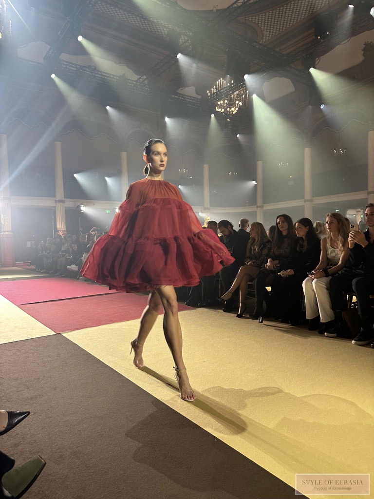 Гостей встретила атмосфера парижской утонченности, где кутюрное мастерство соединялось с лёгкостью современного дизайна. Юозас Статкявичюс в очередной раз продемонстрировал своё умение сочетать силуэт и эмоцию, объединяя вечную элегантность с дерзкими современными акцентами.