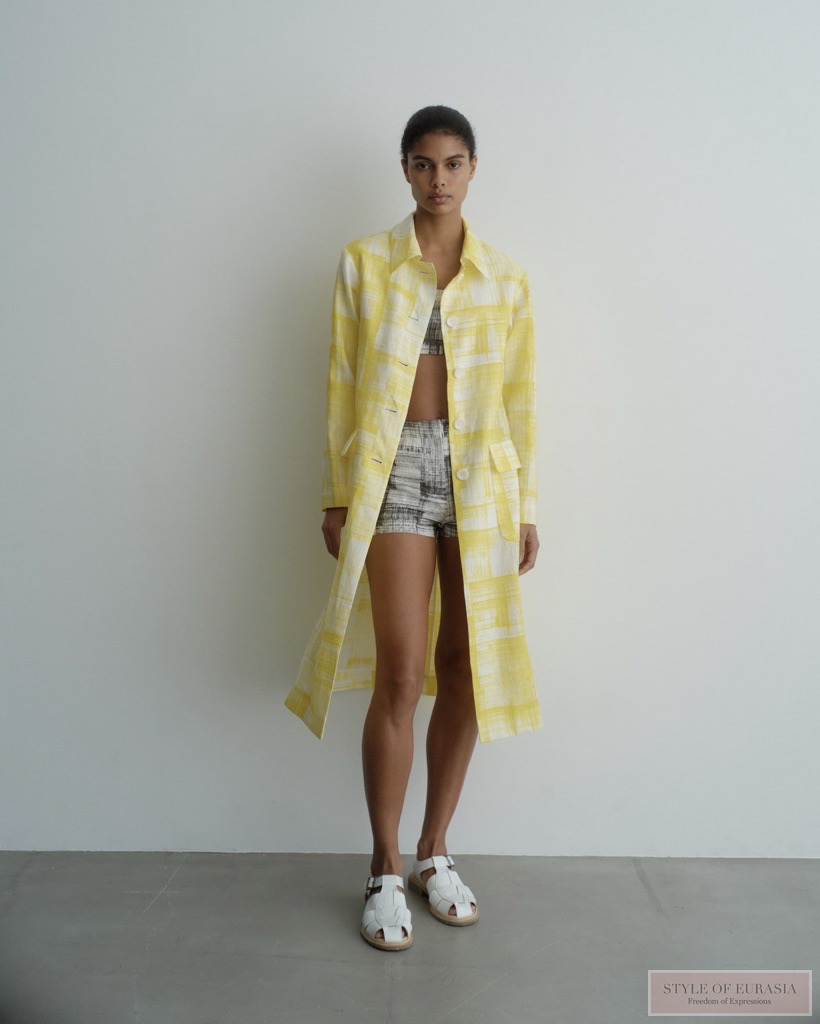 Палитра коллекции наполнена жизнью — ярко-жёлтый, насыщенный синий и чисто-белый создают динамичное сочетание точности и игривости. Силуэты объединяют структуру и мягкость, воплощая гармонию между Парижем и Токио.