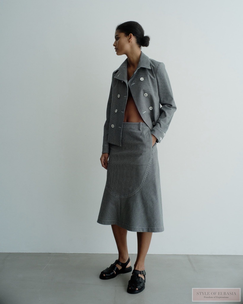 The wardrobe draws inspiration from the iconic stripes that marked her earliest Parisian collections. Each piece — from urban denim to airy summer fabrics — is created to be worn with ease, mixed and matched effortlessly by women of every age and style.
