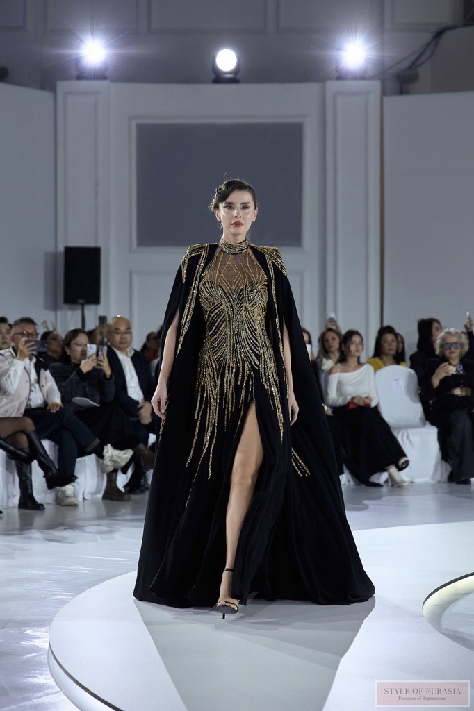 Yerlan Zholdasbek представил коллекцию, соединяющую восточную эстетику с западной динамикой, где многослойность и утончённая ручная вышивка создают особую глубину образов.