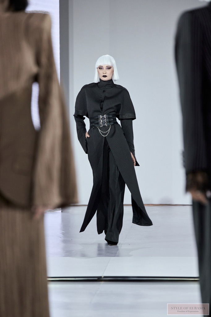 Nazar Almazbekov’s “Black Symphony” blended classic silhouettes with modern forms, creating looks where strict geometry meets artistic expressiveness.