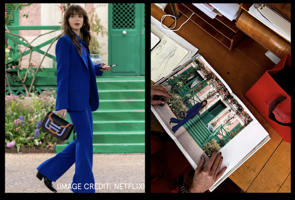 As revealed in the new book by Emily in Paris costume designer Marylin Fitoussi, this is not Emily’s first fashion moment in a Barbara Bui suit.