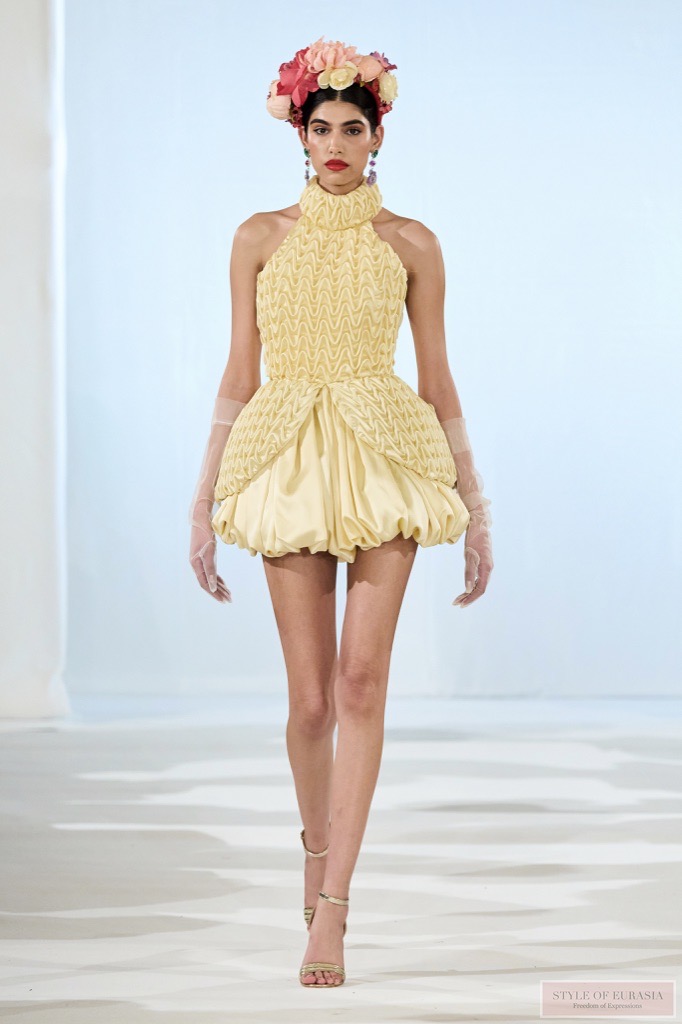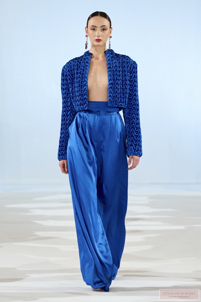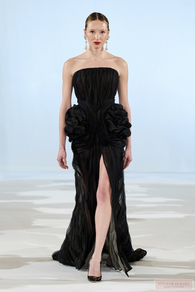Переосмысливая язык каталонского модернизма, коллекция исследует текучесть, асимметрию и органические формы. Силуэты выглядят интуитивными, а не сконструированными — сформированными движением, воздухом и светом. Каждое изделие становится скульптурным высказыванием — кутюр, задуманным как живая архитектура.