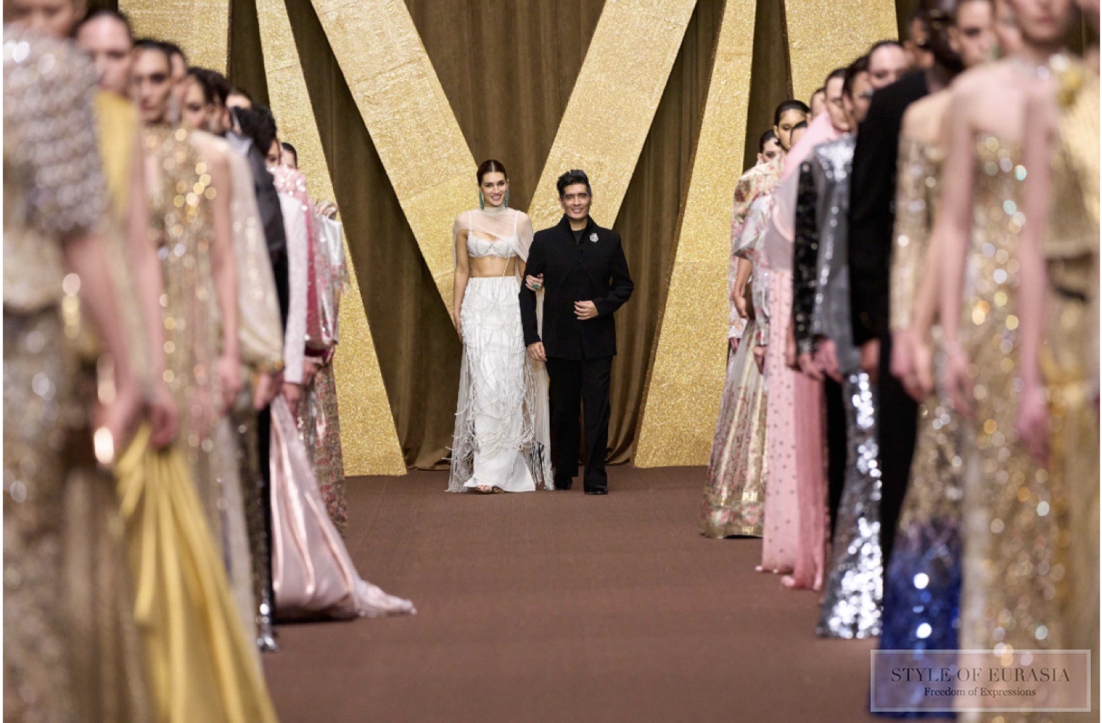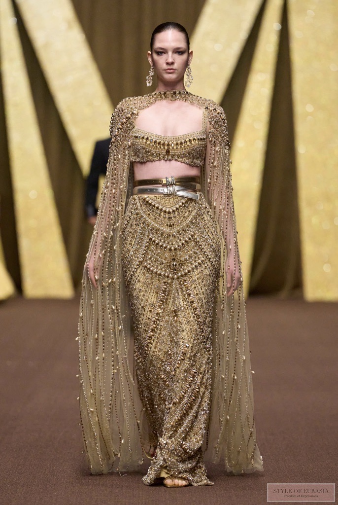 Manish Malhotra closed Dubai Fashion Week AW26/27 with INAYA: The India Story — a deeply poetic tribute to Indian heritage reimagined through a contemporary global lens. With actress Kriti Sanon as showstopper, the collection unfolded as a dialogue between tradition and modernity, uniting menswear and womenswear in a shared ceremonial language. Rich craftsmanship, Kashmiri embroidery, Mijwan techniques and sculptural draping were complemented by High Jewellery, Fine Jewellery and the debut of Manish Malhotra Accessories, marking a holistic vision of modern Indian luxury on the world stage.