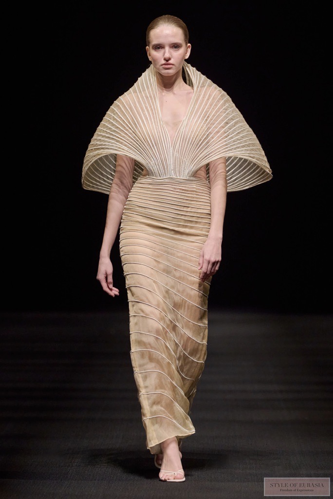 The fourth day brought together established DFW members and notable debuts. Lili Blanc presented Chapter 11, a collection rooted in quiet confidence and architectural elegance. Dubai-based Dina Melwani impressed with her couture debut Sapphire, while Vietnamese brand SORAMAME explored vulnerability through fluid forms. Lama Jouni marked a decade at DFW, expanding her brand universe with refined eveningwear and reaffirming her position in contemporary luxury fashion.