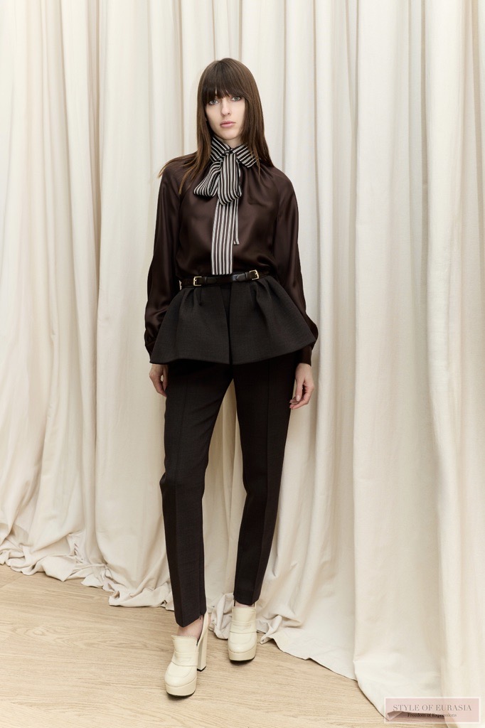 Вдохновляясь строгой дисциплиной мужского портновского искусства, дизайнеры задают тон жакетами с чётко очерченными плечами. Узор «гусиная лапка» и винтажная клетка появляются на рубашках с объёмными рукавами и бантами-лавальер, тогда как асимметричные юбки и скульптурные баски привносят в образ движение и лёгкость.